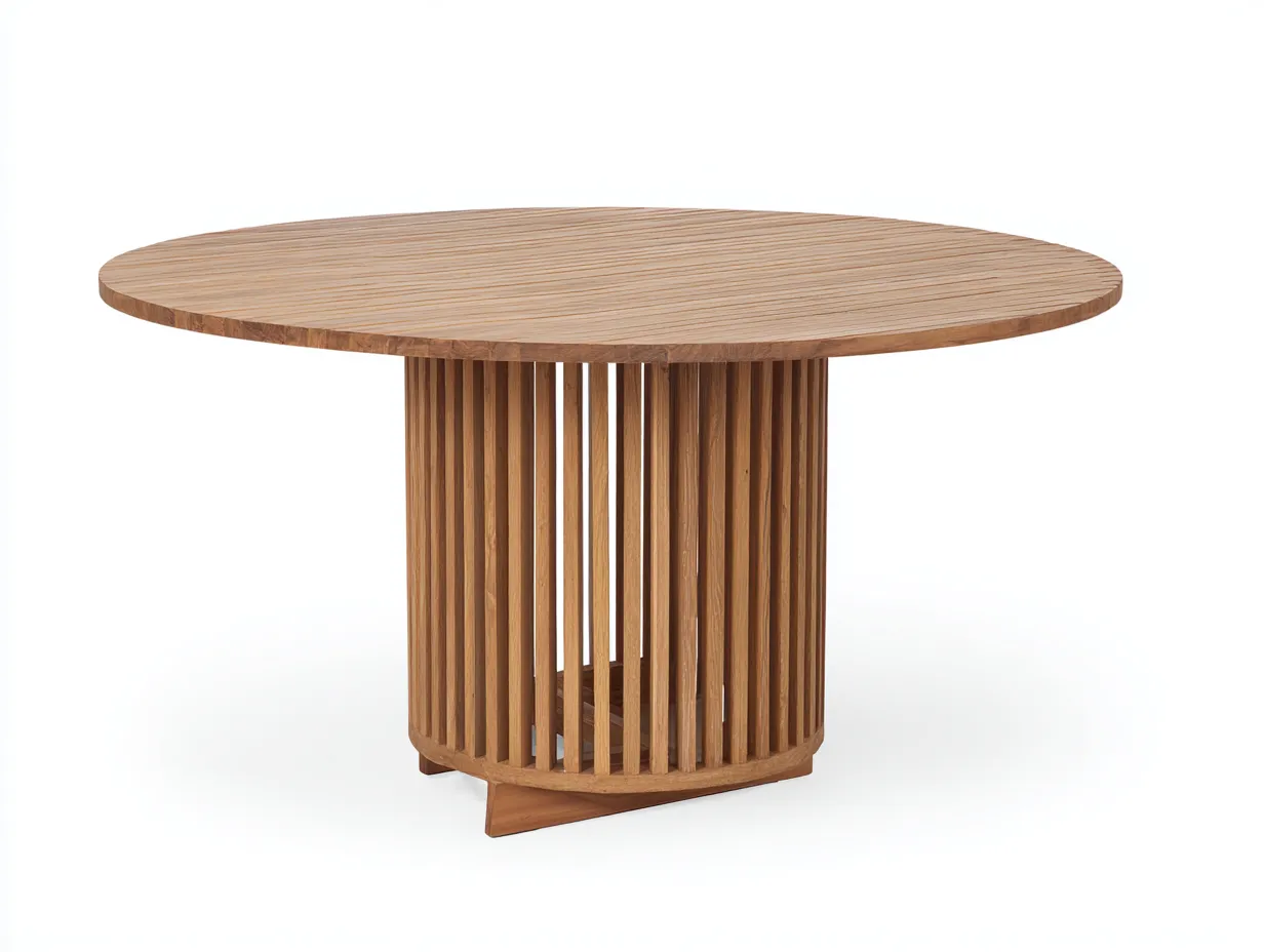Die großzügige Tischfläche bietet ausreichend Platz für Mahlzeiten, Getränke oder dekorative Elemente im Freien. Das runde Format ermöglicht eine flexible Nutzung.