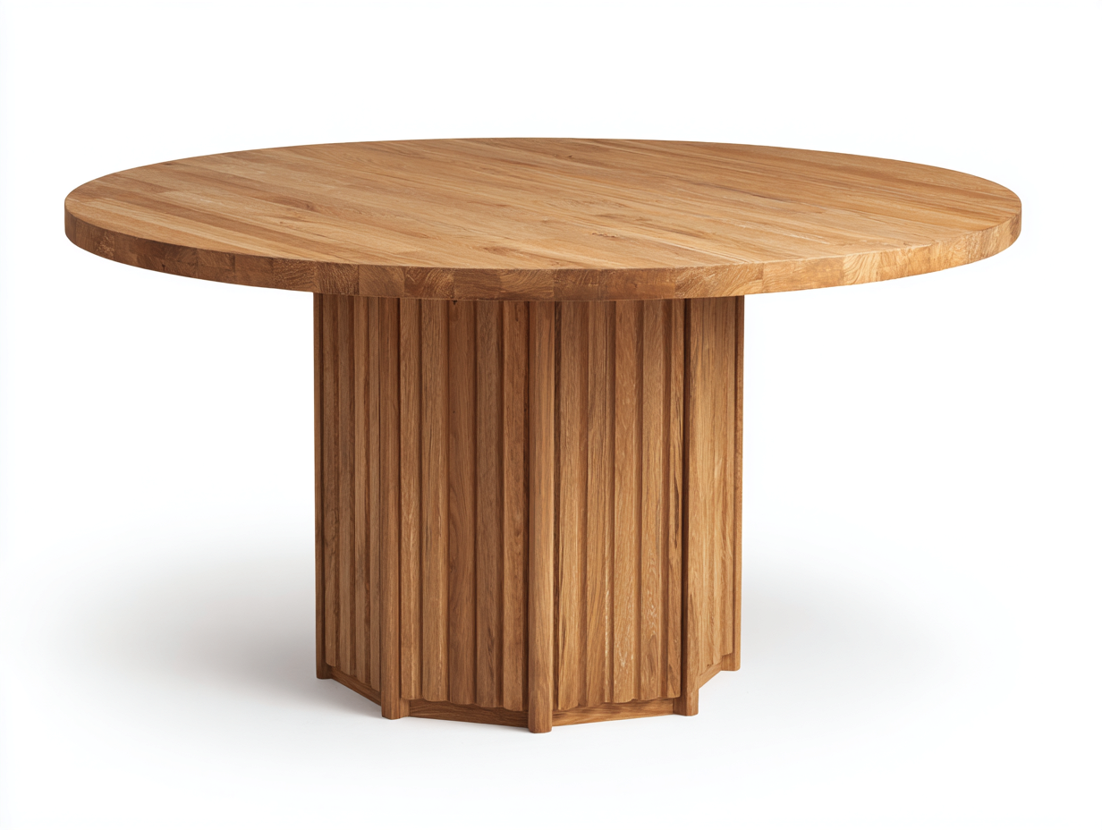 Dieser Gartentisch aus massivem Holz überzeugt durch seine klare Linienführung und eine stabile Konstruktion. Die runde Tischplatte und das zentrale Säulengestell sorgen für ein harmonisches Gesamtbild und machen den Tisch zu einem stilvollen Mittelpunkt im Garten oder auf der Terrasse.