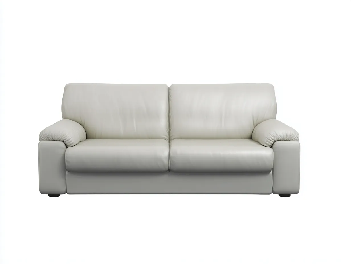 Das Sofa ist vollständig mit einem glatten Lederbezug in Grau ausgestattet. Die Oberfläche ist gleichmäßig verarbeitet und pflegeleicht. Eine stabile Innenkonstruktion sorgt für zuverlässige Unterstützung und eine langlebige Nutzung im Alltag.