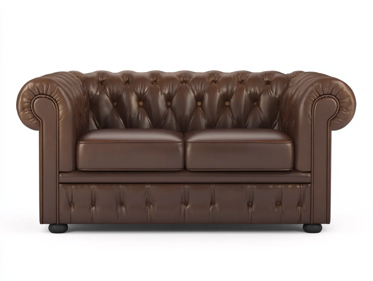 Dieses klassische Zweisitzer Sofa ist fuer den Einsatz im Wohnzimmer konzipiert und bietet eine komfortable Sitzgelegenheit fuer zwei Personen. Die gepolsterte Ausfuehrung und die markante Formgebung unterstuetzen ein zeitloses Erscheinungsbild.